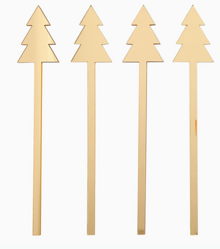 Mirrored Gold Tree Stir Sticks - Set of 4
