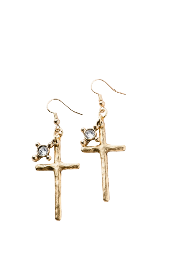 "Let your light shine" with our newest dangle earrings featuring a beautiful hammered cross with just the perfect accent of sparkle.