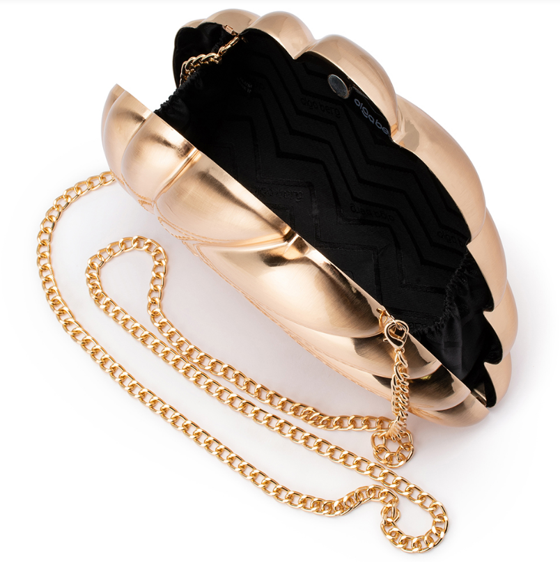 The beautifully crafted SHELLA Clutch is the perfect marriage of elegance, fun, and functionality. Its hard case shell is stylishly shaped and made from sleek metal. You'll love the classic clutch shape and roomy interior, plus the chic, sculpted texture add a touch of playfulness.