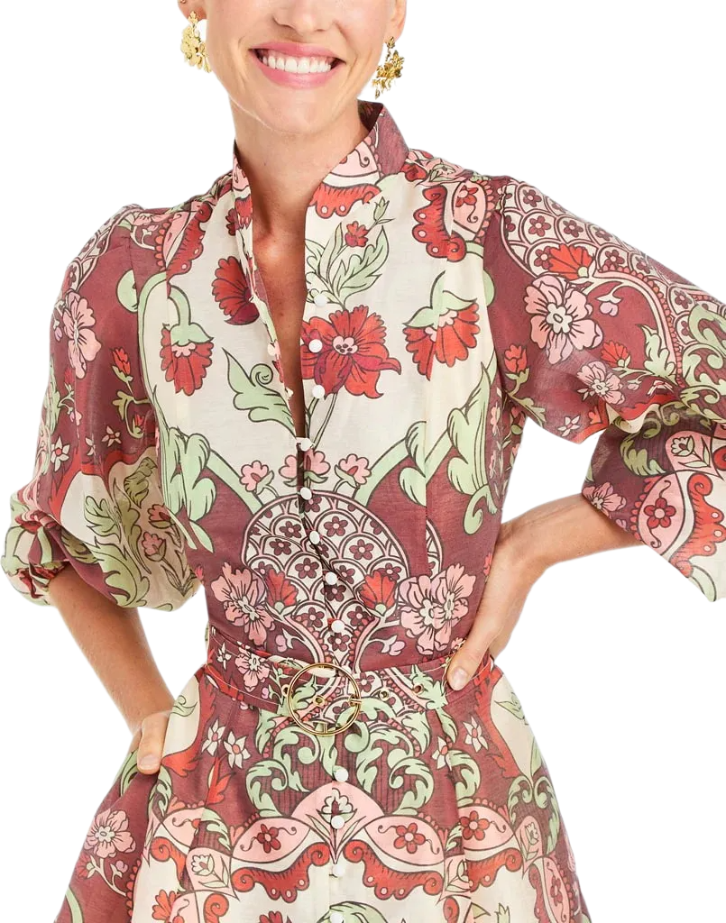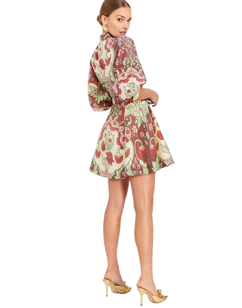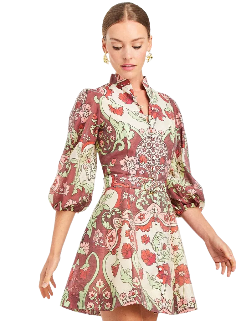 Romantic and regal, the Valencia Mini Dress is made for turning heads this fall. Designed in our Jardin Rose placed print, this flattering fit-and-flare silhouette features princess seams, a mandarin collar neckline, and a matching belt to cinch the waist just right. Finished with a horsehair-lined hem for graceful volume, this day-to-night dress makes every outing feel a bit more special.