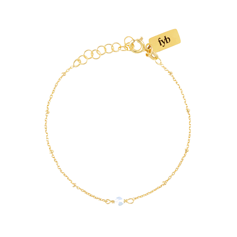 Dainty birth month inspired opalite stone on an 18k gold plated sterling silver chain. 6" + 1" adjustable extender chain.
