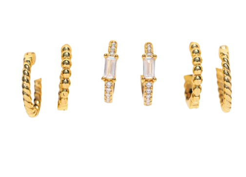 Indulge in your California fantasies with this hoop set. Become the star of your own show and choose the huggie hoop pair that perfectly matches your vibe for the day! With three captivating options to choose from, you'll have the freedom to unleash your inner style icon every day.