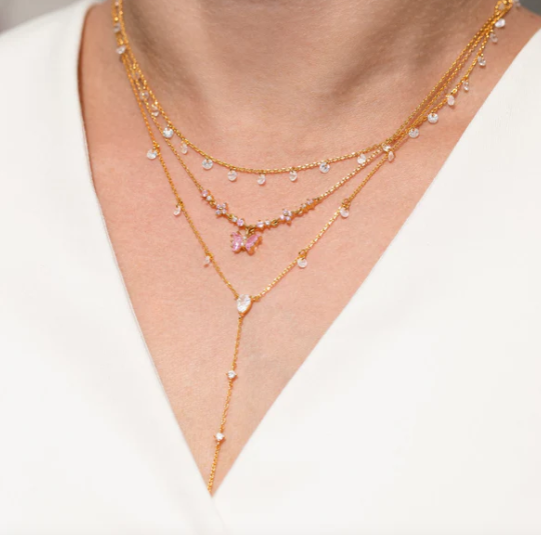 Pear Drop Necklace is basically a “look, but make it effortless” moment for your neckline. Diamonds trail down a Y-drop chain, catching light with every move like they were made to flex. Subtle, chic, and just a little flirty, the Coronado Y Drop Necklace turns any outfit into an instant vibe.