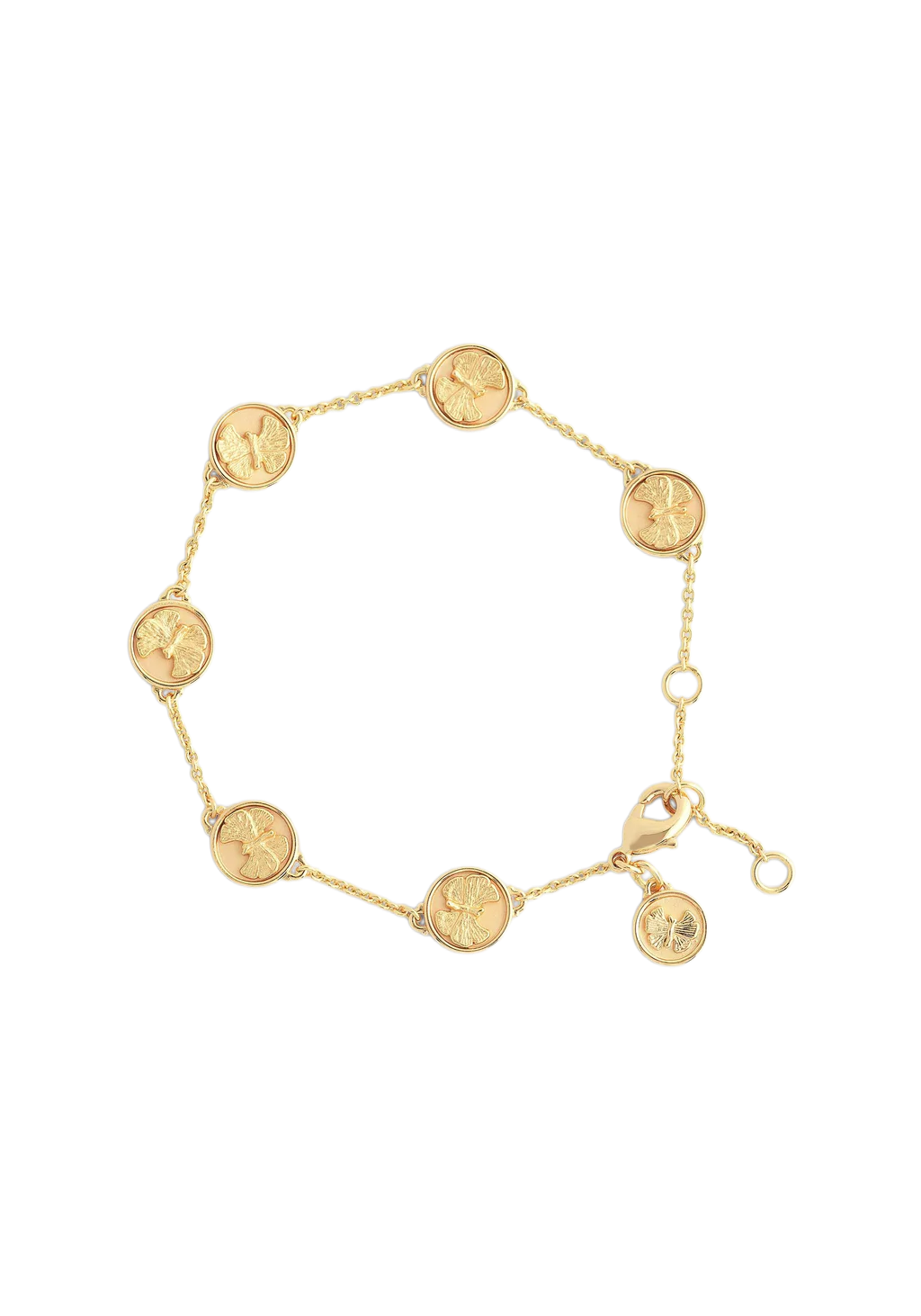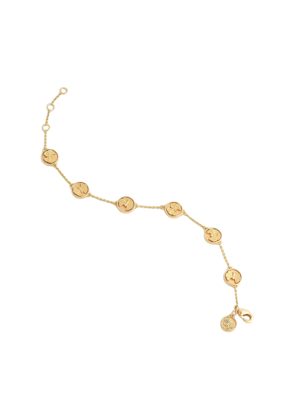 Made from 18k gold dipped brass, this adjustable-length bracelet features coins emblazoned with Anabel Aram’s signature butterfly motif, adding a subtle and captivating accent to your jewelry collection. Not just a charm bracelet, it's a way to add a touch of whimsy to your look. Made with love from high-quality materials, this coin-adorned bracelet with Anabel Aram's butterfly design is the perfect pick for any fashion-forward jewelry collection. Because let's be honest, who doesn't love a surprise in their coinage?