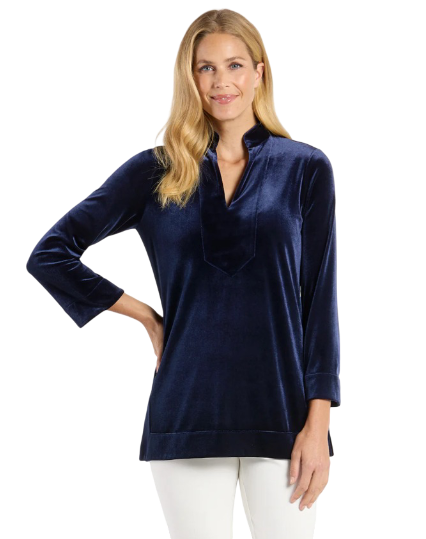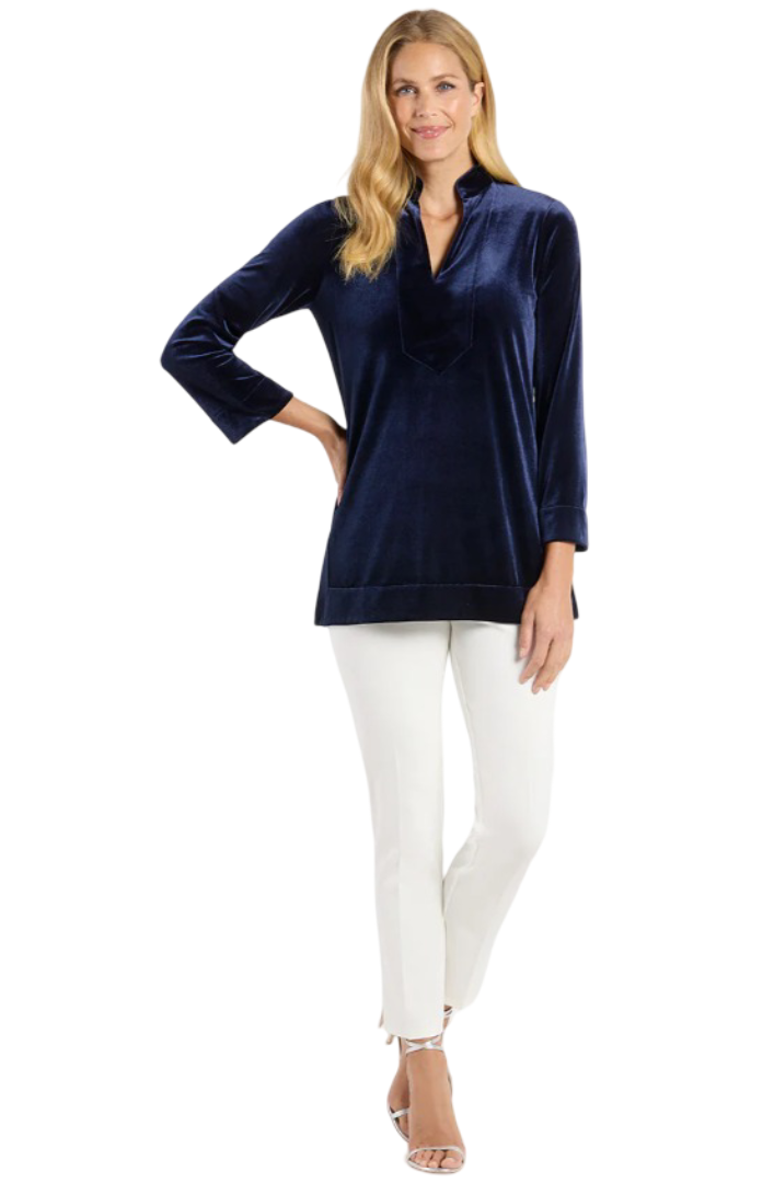 Our Chris top is the ultimate in effortlessly chic style. This long-sleeved tunic top features a timeless design complimented by side vents at the hemline, making it a classic and versatile addition to your wardrobe.