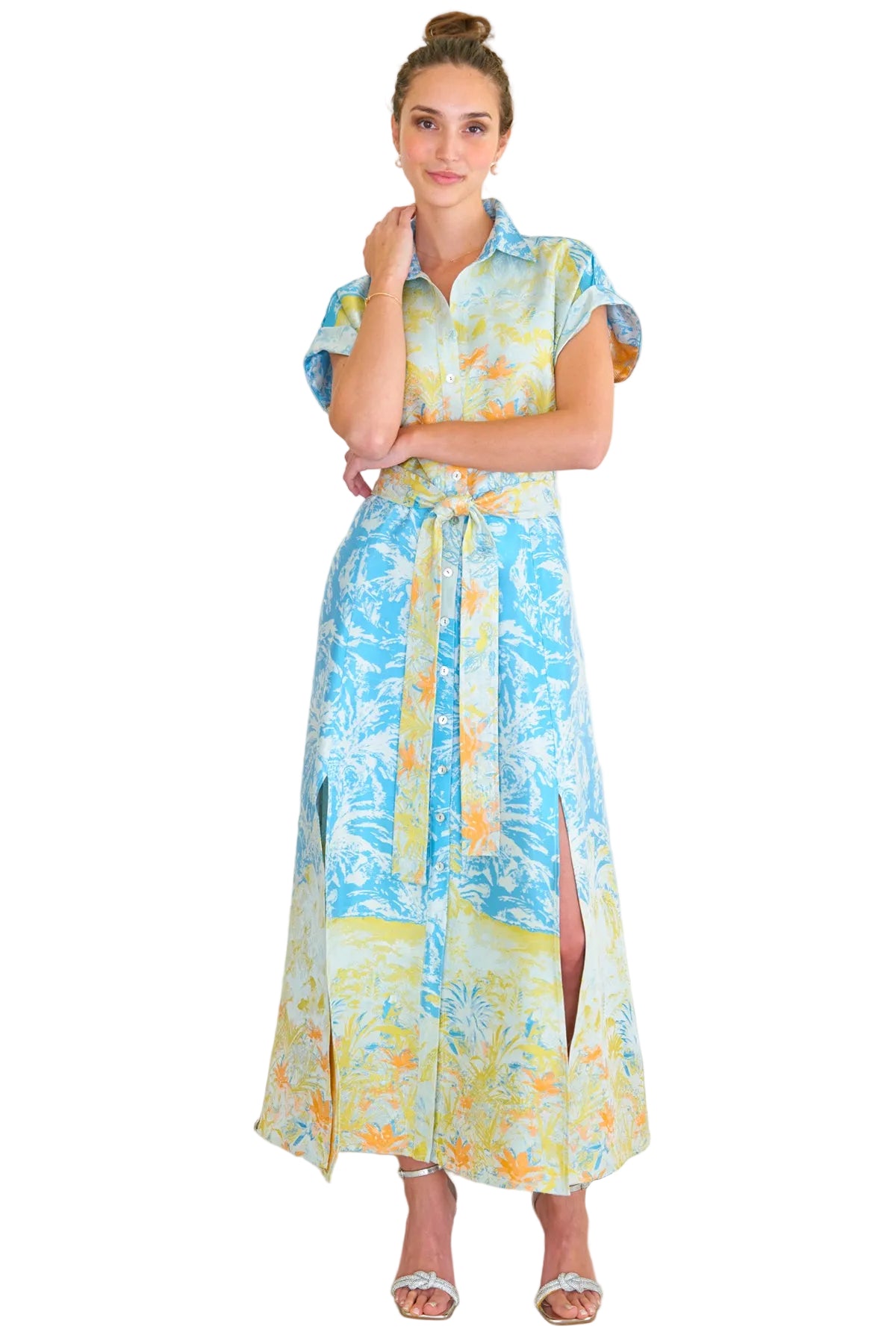 Long Chantal Dress Wedding Guest Jacquard - Tropical