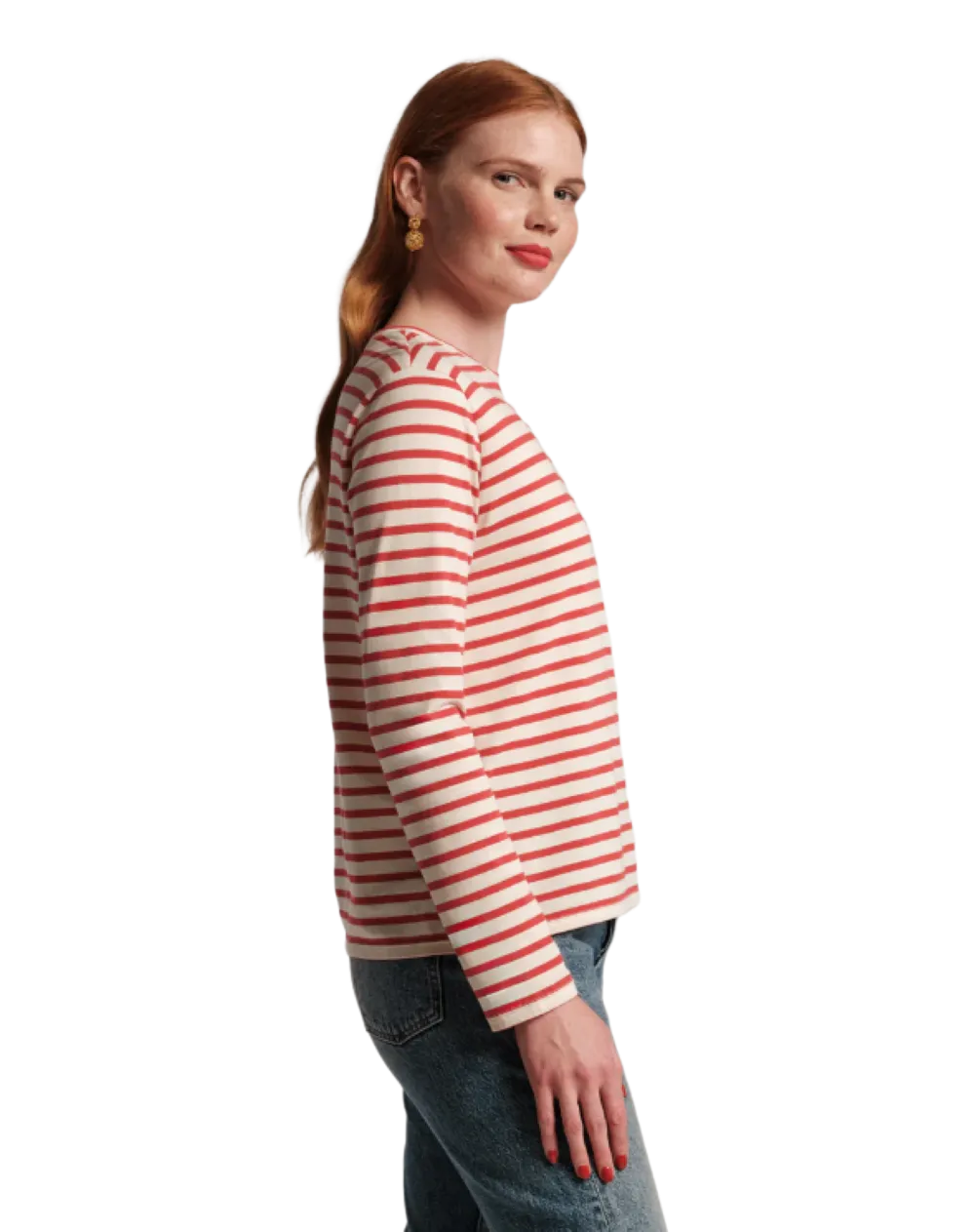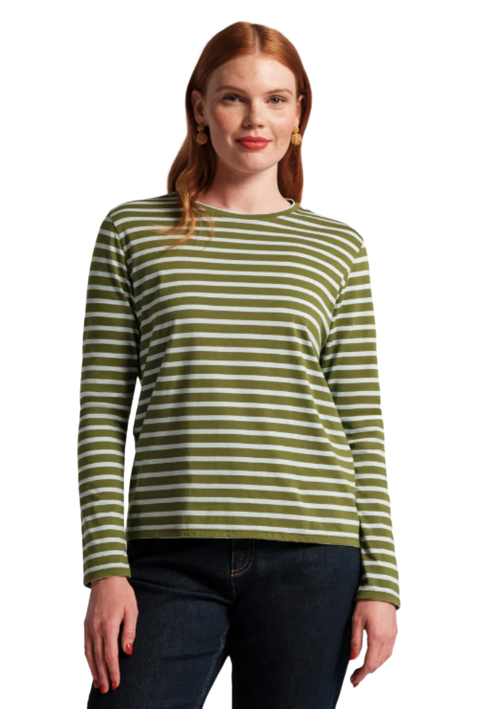 Our fan-favorite Long Sleeve Striped Tee Shirt is constructed in soft pima cotton, and is a great layering piece for chillier days or paired on its own with a pair of your favorite jeans for that effortlessly chic look.