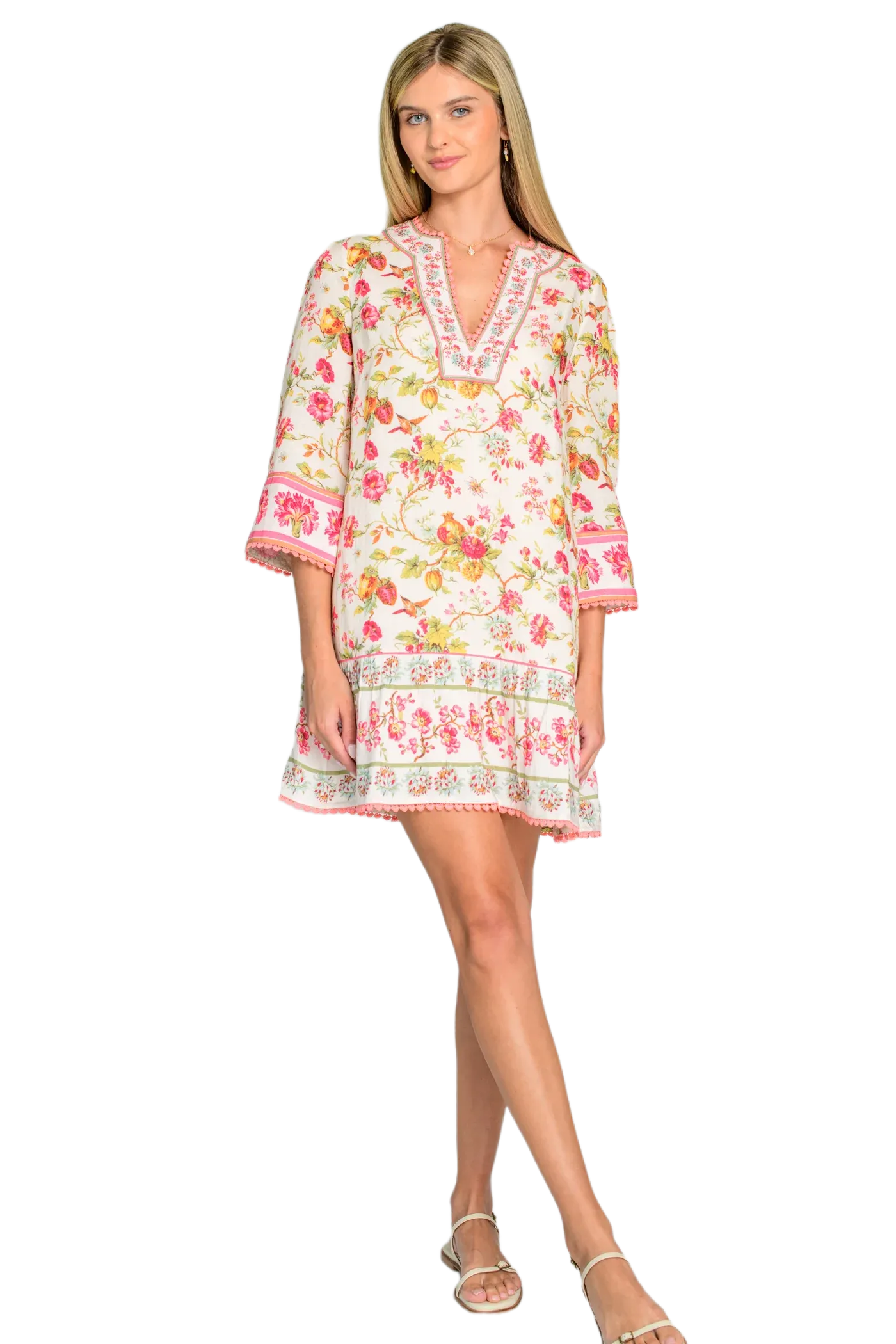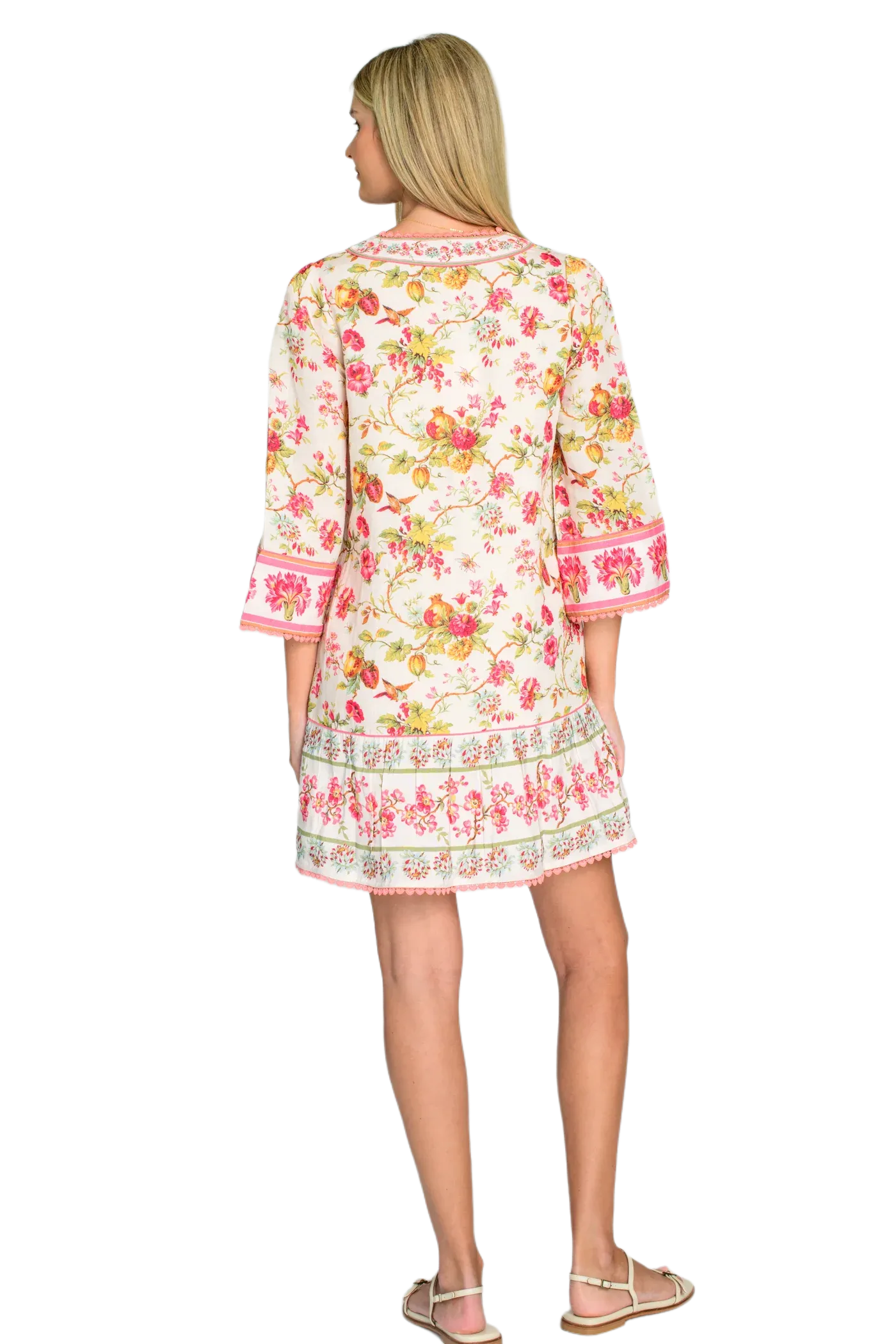 I love Lucy & you will too! She's an easy throw-on silhouette with a V-neckline, cropped ruffle sleeves, and a flutter hem skirt. She can be easily dressed up or down and looks darling in the English Gardens print accented by a decorative border and heart-shaped crochet trim.
