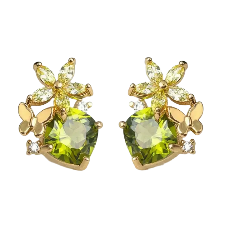 Features: * Elegant butterfly design * Vibrant olive green cubic zirconia * Secure stud earring style