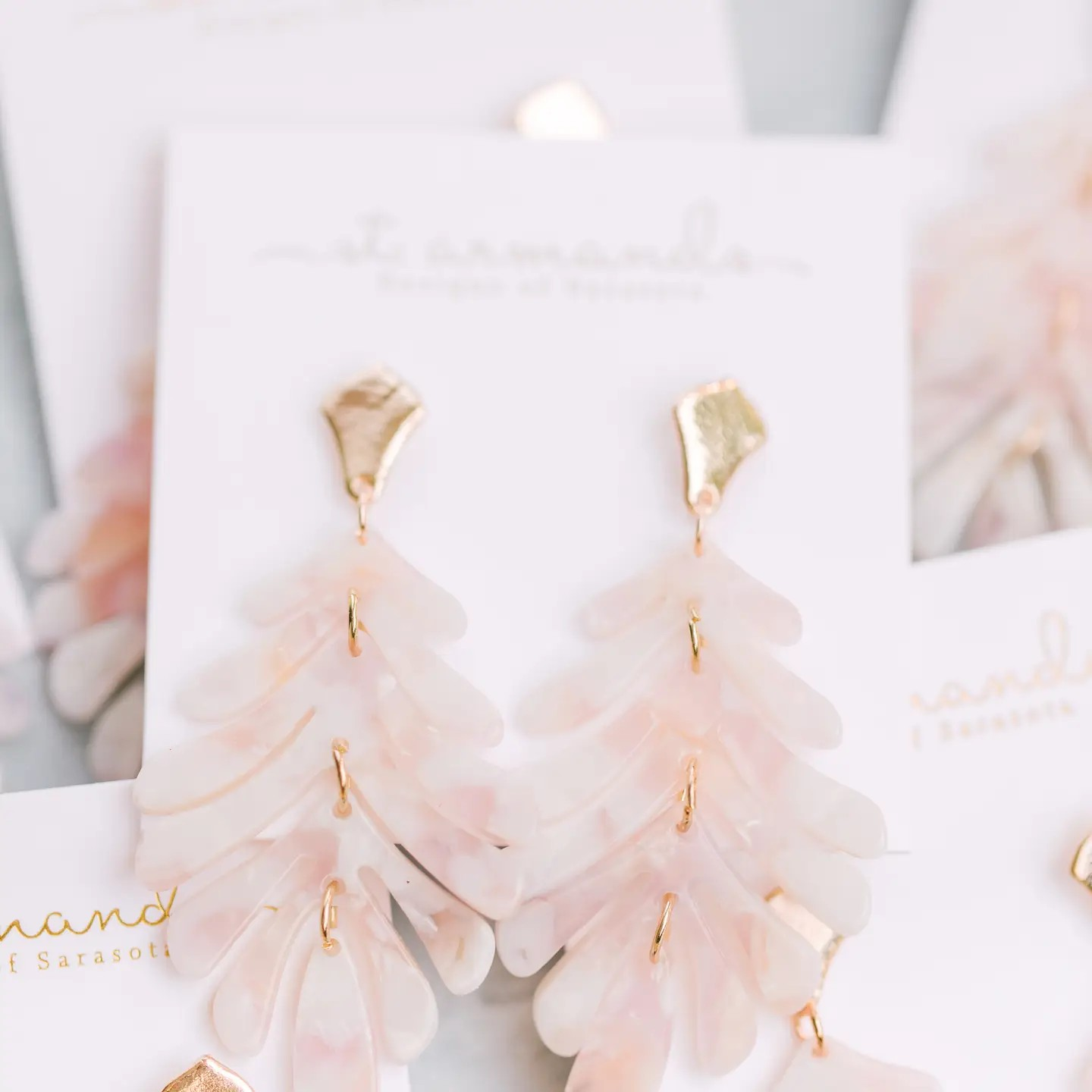 New Palm Earrings are in for spring/summer and are made of the same lightweight materials as our best-selling tortoise collection.