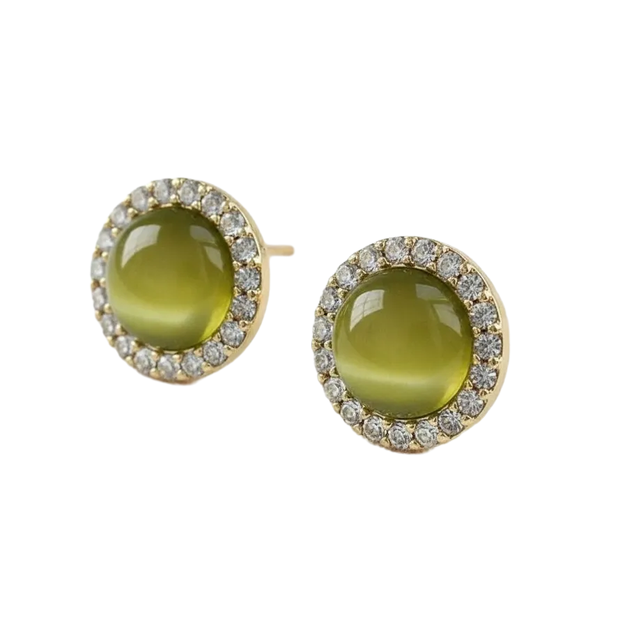 Elevate your style with these stunning drop earrings featuring a captivating olive green cat eye design. Perfect for any occasion, these earrings are a blend of elegance and modern flair.