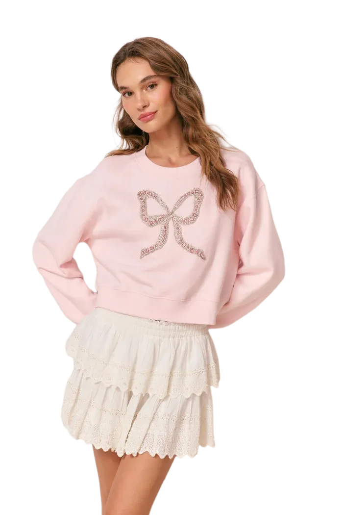 The Rylan Pullover is a cozy, everyday essential elevated with signature LoveShackFancy charm. Crafted from soft cotton-blend fleece, it features our iconic embroidered bow on the chest, adding a sweet, whimsical touch to a classic pullover silhouette. Perfect for layering or wearing on its own, Rylan is effortless, playful, and undeniably romantic.