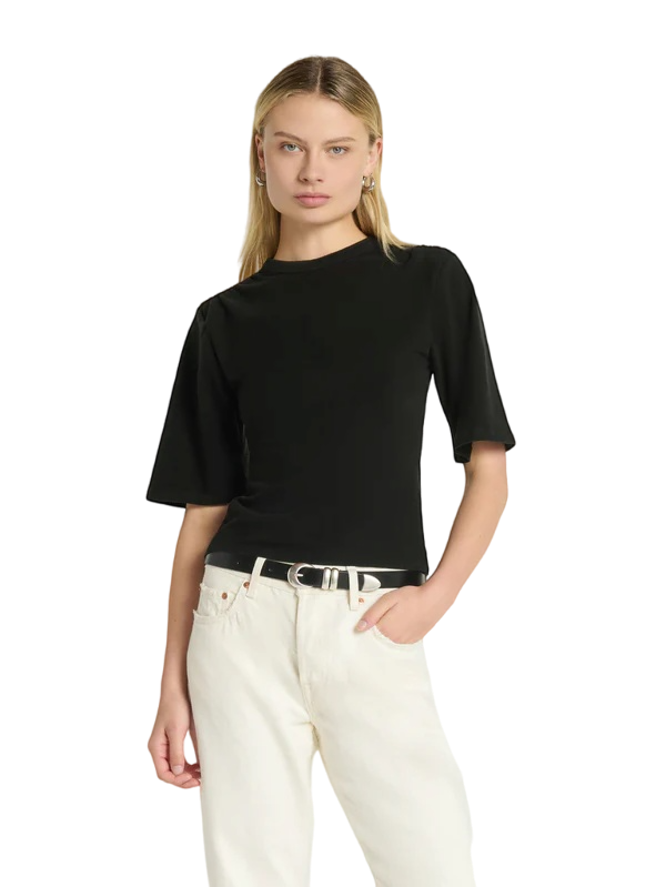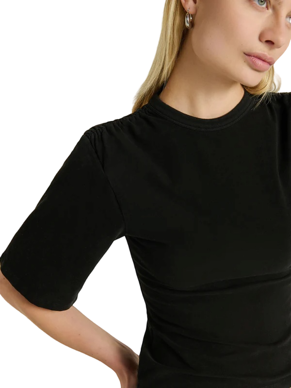 A minimalist, effortless tee with not-so-basic details like gathered shoulders, a ruched waist, and boxy, elbow-length sleeves.   Signature Nation fit. Slightly easy through the body, not fitted or oversized.