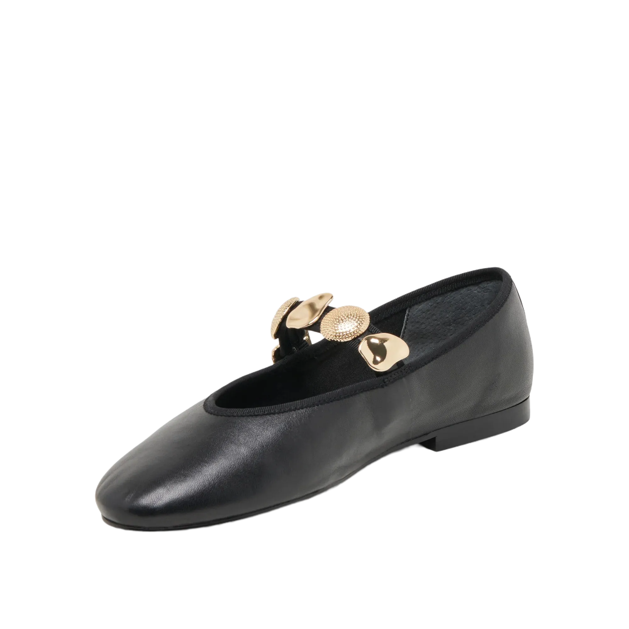 RELAN’s comfortable yet elevated design is made fresh by bold colorways and textures for fall. This sustainably crafted, round-toe ballet flat features light-catching gold accents along the strap. She’s perfectly sophisticated for the office or casual weekends out.