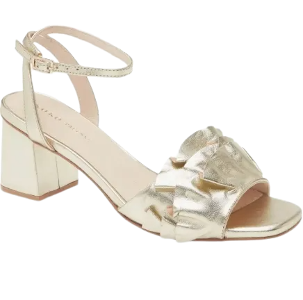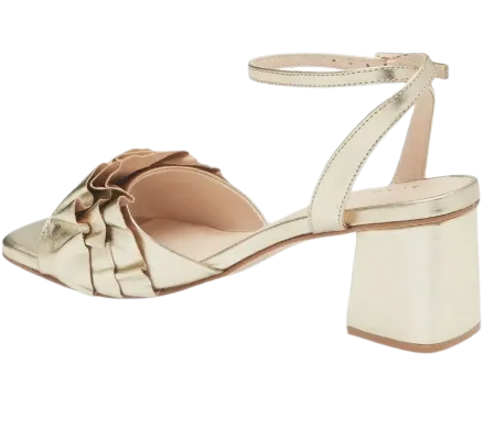 Introducing the Serenity Ruffled Topped Sandal—a feminine and elegant addition to your shoe collection. This sandal features a luxurious leather upper and lining, providing a soft and comfortable fit. The 2 1/2" heel height offers the perfect lift for a flattering silhouette, while the adjustable ankle strap with buckle closure ensures a secure, custom fit. Designed with a cushioned footbed for all-day comfort and a durable rubber outsole for stability, the Serenity sandal is perfect for both special occasions and casual outings. Add a touch of sophistication and charm to any outfit with this ruffled design.