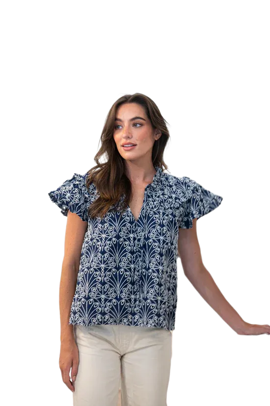 Meet the latest iteration of our Flutter Sleeve Top! Every classic closet needs a polished top to make getting ready a breeze. Designed to take the guesswork out of putting together a timeless look, you will find us pairing this custom shell eyelet with our favorite crisp, white denim for casual dinner parties and fun spring outings.