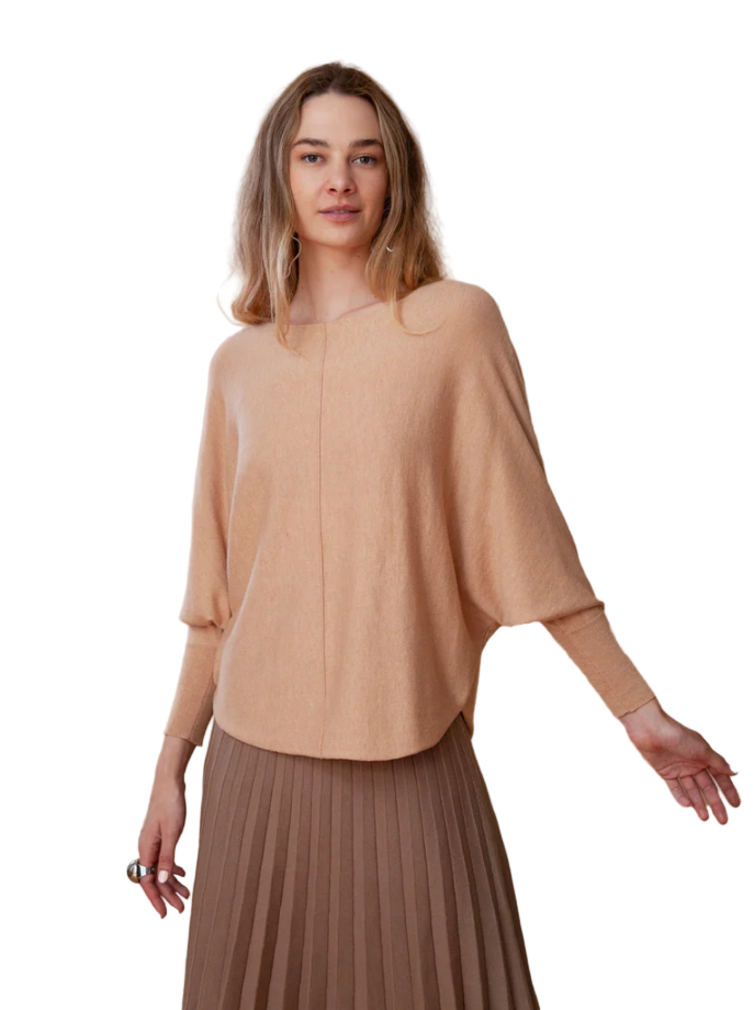 Our bestselling Ryu top is as soft as it is practical. While wearing the brand-new cashmere version, you will feel like you are wearing a piece of heaven. The added touch of the center seam and bat wing sleeve give this top a bit of extra dimension.