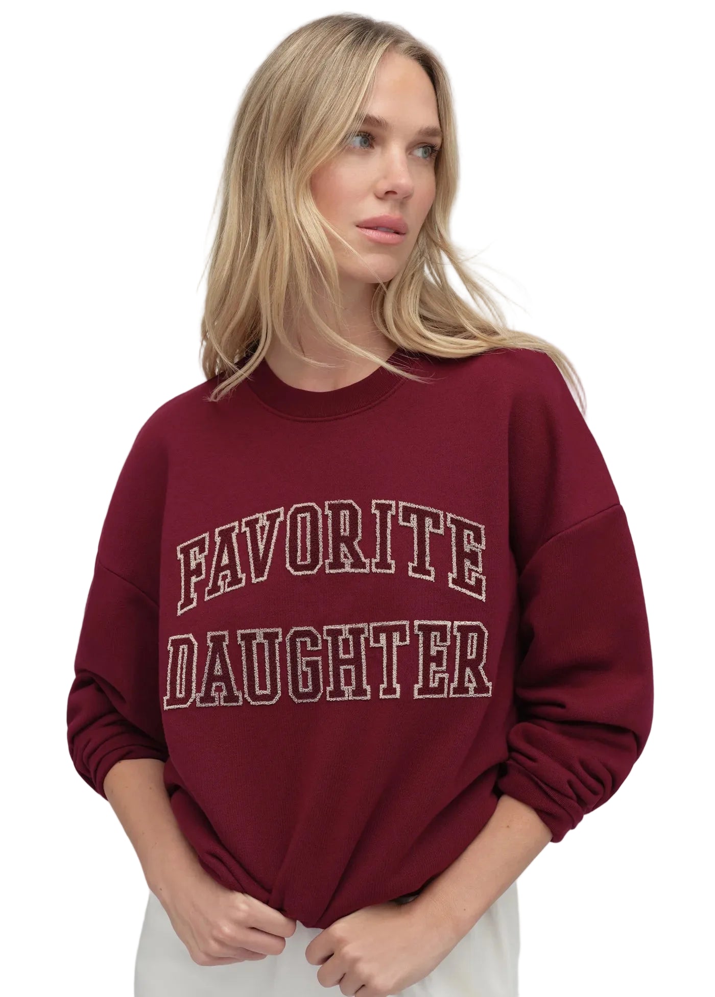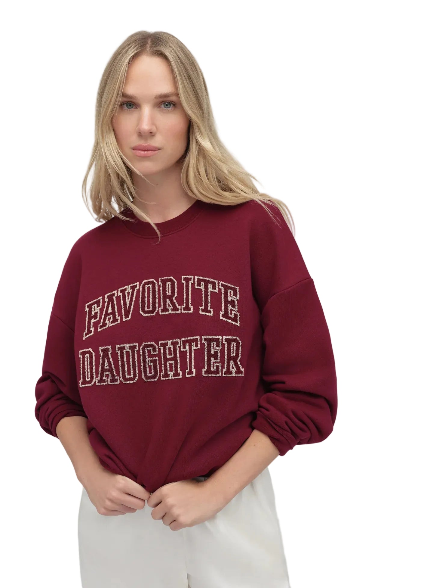 Our Collegiate Embroidered Sweatshirt makes varsity look easy. With the drop shoulder, relaxed fit and velvet embroidered logo, this collegiate classic will go to the head of the class (and your closet).